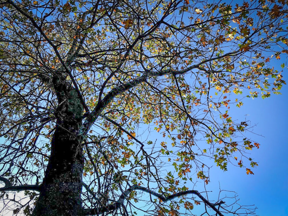 Once you drive to the Village you notice immediately how different the surrounding nature is. There are mountains, magnificent oak trees and the leaves are yellow indeed! Lots and lots of leaves on the ground. Here are some pictures from the Village area: